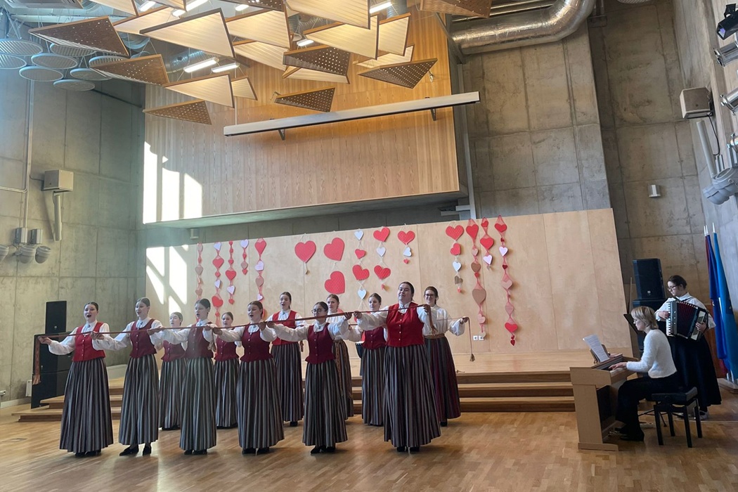 Sirsnīgs paldies mūsu radošajai komandai. II kursa studente Ieva Stikāne bagātināja priekšnesumu ar akordeona pavadījumu, bet koncertmeistare Ilona Kuļa atskaņoja pavadījumu A. Sējāna latviešu tautasdziesmas apdarei “Saule auda audekliņu”.