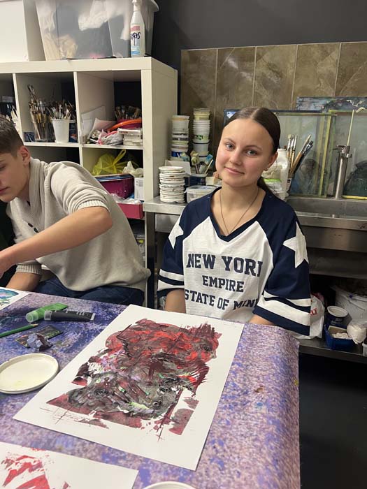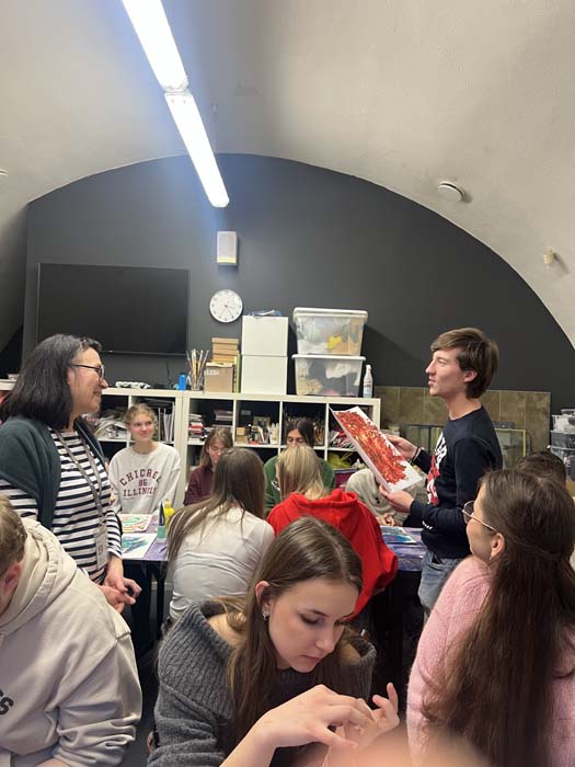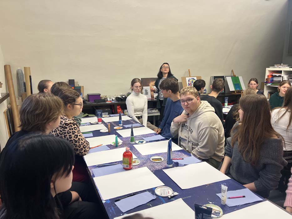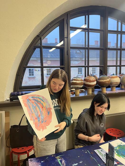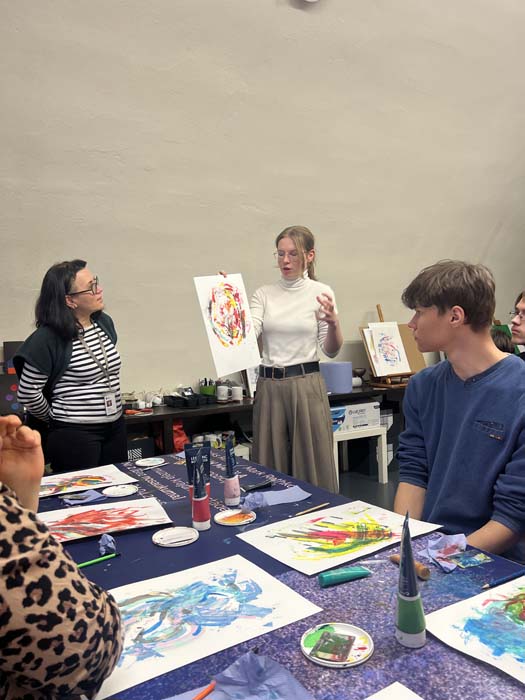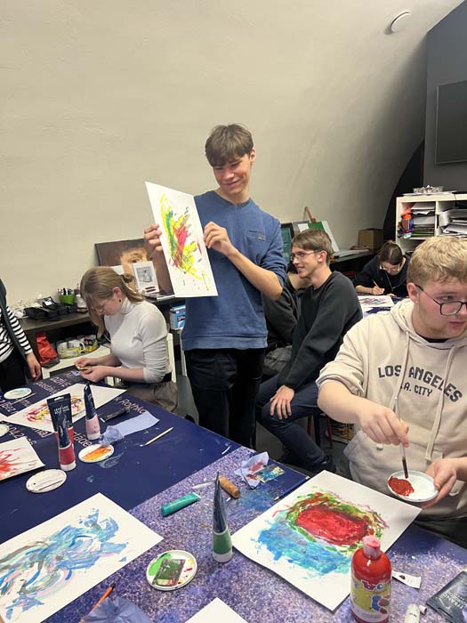 Nodarbības praktiskajā daļā audzēkņi kopā ar muzejpedagogu īpašā autortehnikā izveidoja savu unikālu mākslas darbu, dalījās iespaidos un pieredzētajā.